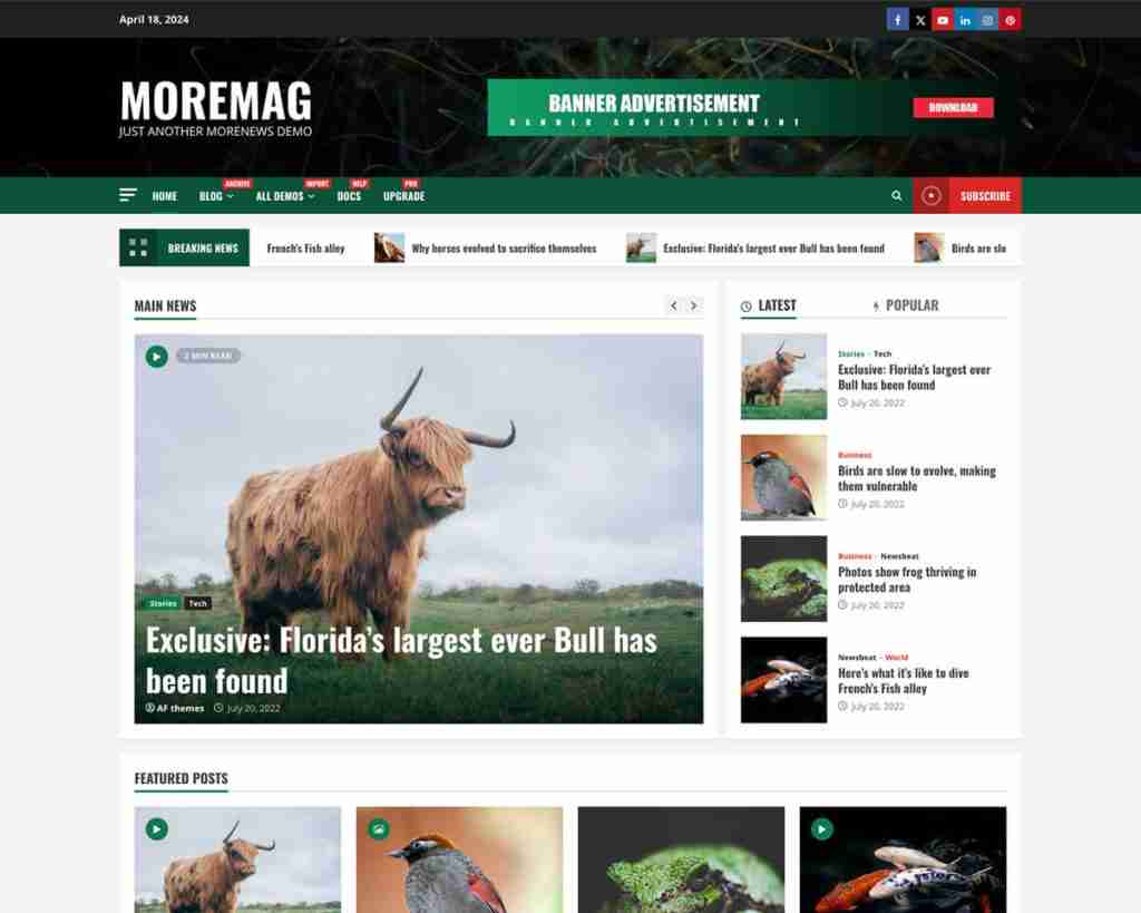 The dynamic WordPress theme designed specifically for bloggers, magazine publishers, and news enthusiasts. Seamlessly navigate through our diverse selection of free demo sites to create your ideal news platform effortlessly. Elevate your customization game with our suite of over 9 custom widgets and widget sections, allowing you to curate and manage content with precision. Enhance reader engagement with customizable main banner options and the choice between light and dark modes for optimal readability. Seamlessly integrate e-commerce functionalities with RTL support and compatibility with popular plugins like Elementor, Gutenberg, and WooCommerce. MoreMag is engineered to amplify your site’s search engine visibility, ensuring your content reaches a wider audience. Our dedicated support team is ready to assist you every step of the way. Unlock the full potential of your news website with MoreMag today.